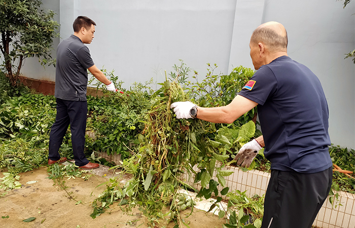 黨員干部帶頭對小區(qū)內(nèi)部環(huán)境臟亂,雜樹、雜草叢生情況進行清理整治,發(fā)揮共產(chǎn)黨員的先鋒模范作用,使參與人員自覺愛護環(huán)境,提升創(chuàng)文、守文意識。