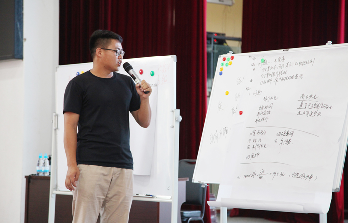此次培訓(xùn)方式不同于以往的“你聽我講”,而是打破固定的聽課席位,每個(gè)小組8個(gè)成員圍坐在一起擺成一個(gè)個(gè)“u”字形,每個(gè)小組成員打散,財(cái)務(wù)、經(jīng)營等各口相關(guān)人員隨機(jī)組合,8分鐘案例分析充分調(diào)動小組成員積極性,大家緊密合作、碰撞觀點(diǎn),主動上臺講解課題,為小組贏分,甚至還根據(jù)自己專業(yè)知識延伸題外知識點(diǎn),不放過加分的機(jī)會,講師也會走進(jìn)小組與學(xué)員互動,“你問我答”,讓學(xué)習(xí)傳導(dǎo)更加自然生動,學(xué)思成效一目了然。