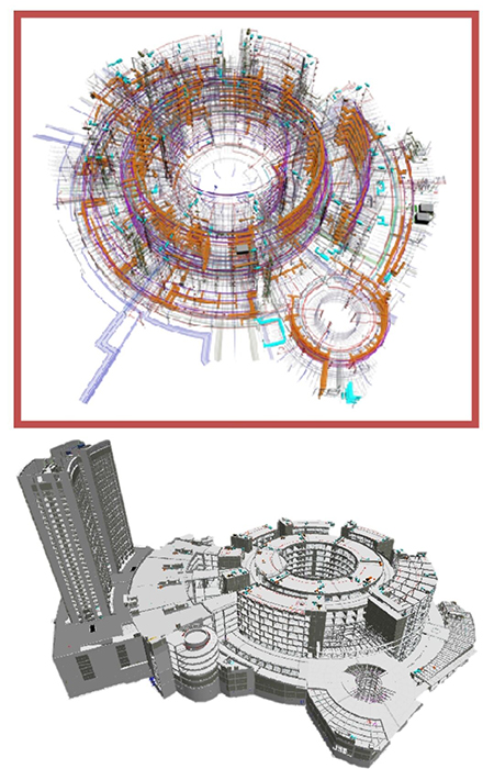 車行天下汽車城(二期)項目開工前組建BIM團隊,根據(jù)項目建筑形狀為圓形及弧形,場地條件及結構豎向極其復雜,項目建筑體量大,總建筑面積約43.34萬平方米,結構復雜等特點,和各專業(yè)工程間產(chǎn)生的碰撞多,單層面積大,施工工藝復雜等難點。先后運用BIM技術解決面臨的重難點問題,如利用模板支撐體系、外腳手架、三維場部等軟件,提高質(zhì)量,減少安全隱患。利用BIM 技術數(shù)據(jù)集成分析,減少現(xiàn)場返工,通過對本項目工程設計、土建施工、機電施工、鋼結構施工等各專業(yè)BIM的集成運用,圖紙問題核查杜絕了因圖紙原因?qū)е碌姆倒?,降低了材料成本、人工成本、機械成本、工期成本。