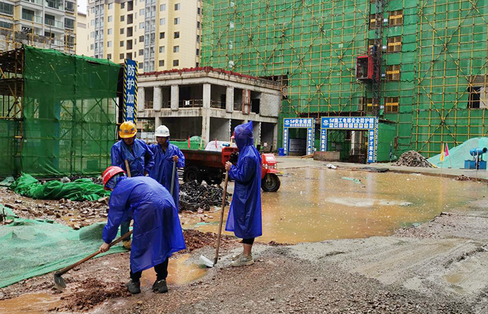 現(xiàn)場因為下大雨,施工人員還沒有到,項目經(jīng)理帶頭走在前面跟他們交待著,隨后只見我們的項目副經(jīng)理小全子拿起鋤頭就在一座集水井前開始挖,他們從旁邊挖出一個小溝,把水引流到集水井里面。雨越下越大,打著傘的我,鞋子、褲子都濕了,但我們的項目施工管理人員并沒有去安全通道躲雨,而是繼續(xù)往前走,看哪里積水多,就在哪里挖引流溝,我問他們:“這么大的雨,等下雨停了再來挖嘛,這樣等下都搞生病了”,他們笑著回復我:“如果再不挖,等下雨下大了,水越積越多,流到施工電梯基坑里面就麻煩了,雨太大了,你來這干嘛,趕緊回去”,這席話聽了暖暖的。