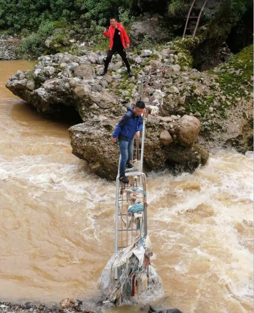 前進(jìn)路上地勢(shì)極其復(fù)雜多變,崎嶇的山路,茂密的叢林,山嶺重疊交錯(cuò),蜿蜒盤旋,猶如一條正在酣睡的巨龍,腳下松軟的泥土像擁有靈魂的沼澤,不斷拖慢隊(duì)伍前行的速度。湍急的河流不斷奔涌,只有一個(gè)簡(jiǎn)陋的橫梯橫在中央,但是,如此復(fù)雜的路徑最終還是被隊(duì)伍赤誠的責(zé)任心和兄弟間互幫互助的團(tuán)結(jié)情所擊退。