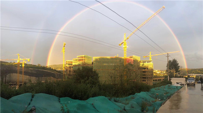 每當(dāng)看到太陽(yáng)拉到遠(yuǎn)方的地平線上、雨后的一道道彩虹,就覺(jué)得工地上的一切似乎都顯得如此生機(jī)勃勃,陣陣風(fēng)迎面吹來(lái),才發(fā)現(xiàn)我其實(shí)早已經(jīng)習(xí)慣了風(fēng)中的沙土,同事們頭上的安全帽映著藍(lán)天白云顯得格外耀眼,這就是我和車(chē)行天下汽車(chē)城(二期)項(xiàng)目管理人員的工地生活。大家雖然常年漂泊在外,很少回家,但是因?yàn)橛辛祟I(lǐng)導(dǎo)的關(guān)懷,同事的相知、相伴,大家心里早已經(jīng)把車(chē)行天下汽車(chē)城(二期)項(xiàng)目部每一人當(dāng)成了家人,項(xiàng)目部就是我的第二個(gè)家,一個(gè)有夢(mèng)想、有愛(ài)的地方。我相信我們眼前的困難只是暫時(shí)的,我們大家在一起努力,攜手前行,一定能見(jiàn)到雨后的彩虹。