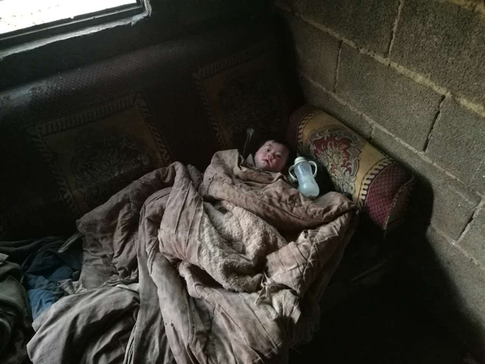 沒來得及洗?我的天哪,這衣服還能穿嗎!當時我心里這樣想。這已經(jīng)不能稱之為衣服,用破布來形容似乎更加恰當,城市里丟棄的衣服都比這個要好百倍千倍。5個月大的女嬰就躺在家中破爛不堪的沙發(fā)上,蓋的被子也是黑黑破破的,她水靈靈的大眼睛看著我們這群陌生人,既不哭也不鬧。同行的女隊員不禁落淚,因為她們想象不出竟有這樣困難的家庭,這么可憐的孩子。