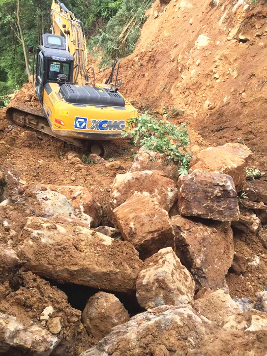 7月13日早7點,響徹云霄的鞭炮聲過后,所有機械開始作業(yè)。挖掘機工作7小時推進到6米的時候,山體出現(xiàn)了滑坡,好在提前做了排險處理,未出現(xiàn)任何施工事故。道路基線均處在滑坡地帶、山體內(nèi)所含石料60%為整石、40%為孤石含雜松軟黏土,這為施工帶來了很大難度,工作進度也非常緩慢,到了晚上22點,道路才勉強推進到9米。