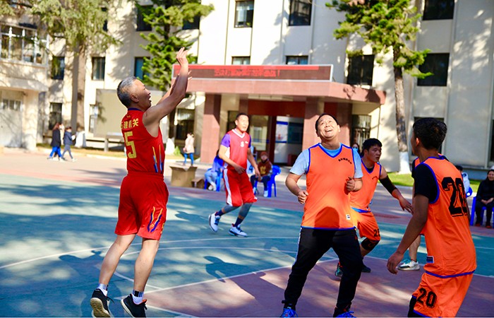 一個籃球,一場球賽。這場球賽,無關乎身份,無關乎年齡,更多的是一種和諧,一種愉快的心態(tài)。高高拋起的籃球,點燃了球場上的激情。搶球、斷球、防守、進攻;嚴守應對、激烈爭奪、默契傳球、完美配合,不時贏得了場下觀眾們的陣陣喝彩。
