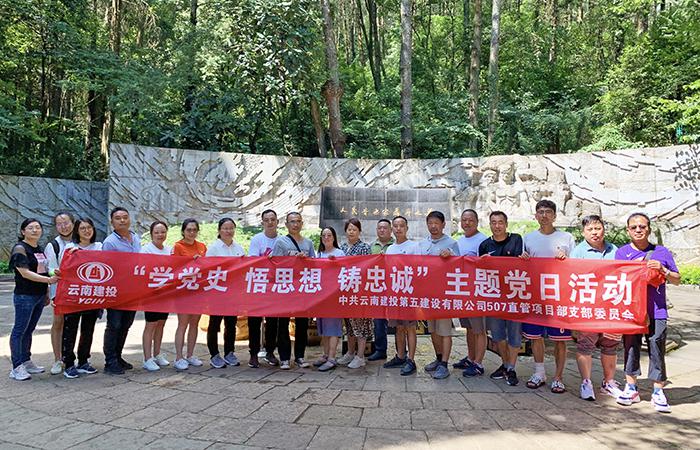 5月22日,五〇七直管部黨支部在直管部經(jīng)理包文、工會(huì)主席畢鵬的組織帶領(lǐng)下全體在昆黨員、發(fā)展對(duì)象、團(tuán)員、二線職工及三供一業(yè)項(xiàng)目職工,共20人到西山聶耳公墓開展黨史教育主題活動(dòng)。