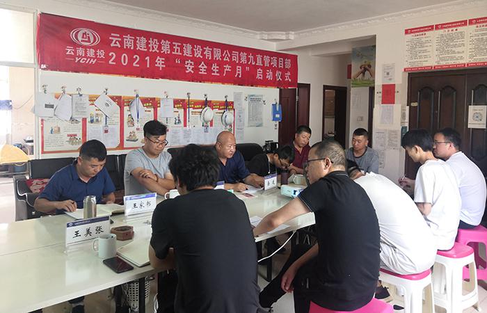 6月18日下午,大理老城區(qū)項(xiàng)目在項(xiàng)目部會(huì)議室舉行2021年“安全生產(chǎn)月”啟動(dòng)儀式,直管部班子成員、甲方代表、監(jiān)理代表、班組代表、項(xiàng)目部管理人員共計(jì)13人參加會(huì)議。