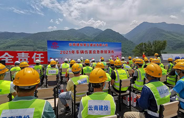 8月4日,公司在路橋三部永金高速項(xiàng)目一分部舉行2021年二季度“車輛傷害”應(yīng)急演練活動。玉溪市永金高速公路投資建設(shè)有限公司副總經(jīng)理徐斌、公司副總工程師何家軍、公司安全總監(jiān)伏見偉出席活動。