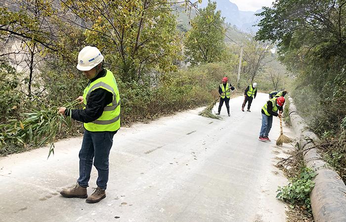 巧家項目的全體管理人員在安排好現(xiàn)場工作后,由黨支部書記馬勇帶隊,穿上反光背心帶上清掃工具進行了道路清理。本次活動清掃道路長度800米,將道路周邊碎石悉數(shù)清理干凈,并將遮擋視線的雜草拔除;這段鄉(xiāng)村小路在大伙的努力下煥然一新,村民安全出行又多了一層保障。