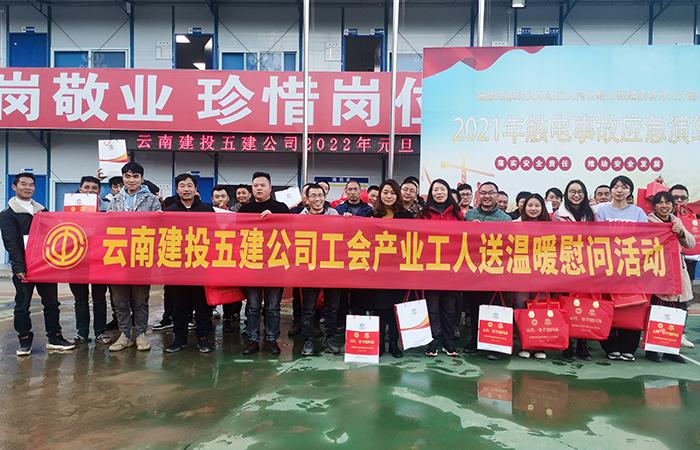 12月21日至22日,公司工會主席冷蕊前往鎮(zhèn)雄至果珠火車站至大灣公路工程項目三分部、鎮(zhèn)雄縣南部新區(qū)新型城鎮(zhèn)化綜合建設(shè)項目-三孔景觀橋項目、鎮(zhèn)雄縣2018年城鎮(zhèn)棚戶區(qū)改造項目、新城六盤水鳳凰臺項目和宣威市第二人民醫(yī)院遷建項目施工二標段等五個在建項目開展公司2022年元旦、春節(jié)“送溫暖”慰問活動。