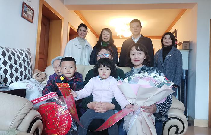 隆冬送祝福,慰問暖人心。1月28日,在新春佳節(jié)即將到來之際,公司副總經(jīng)理石俊、工會(huì)主席冷蕊、財(cái)務(wù)總監(jiān)楊潔代表公司領(lǐng)導(dǎo)班子,對(duì)堅(jiān)守在海外建設(shè)一線的朱潤(rùn)、徐斌兩位職工家屬進(jìn)行走訪慰問,為他們送去大米、糧油、春聯(lián)和“?!弊值任繂柶泛臀繂柦?,向堅(jiān)守在海外施工一線的職工們致以新春的誠(chéng)摯問候和美好祝愿,向?qū)景l(fā)展給予關(guān)心和支持的海外職工家屬表示由衷感謝。