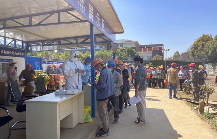 為讓職工和工人不出工地就能方便、快捷地完成核酸檢測(cè),項(xiàng)目部邀請(qǐng)醫(yī)院醫(yī)護(hù)人員來(lái)到項(xiàng)目現(xiàn)場(chǎng)檢測(cè)。為保證檢測(cè)工作迅速有序進(jìn)行,項(xiàng)目部提前排好核酸采集登記表,告知職工、農(nóng)民工核酸檢測(cè)地點(diǎn),核酸檢測(cè)編號(hào),并提前通知所有人帶好身份證、佩戴口罩,排隊(duì)保持安全距離等安全注意事項(xiàng)。檢測(cè)現(xiàn)場(chǎng),項(xiàng)目部統(tǒng)籌各班組結(jié)合現(xiàn)場(chǎng)生產(chǎn)需求及輪班情況,合理安排人員輪流前去采樣,以達(dá)到采樣現(xiàn)場(chǎng)高效、便捷、迅速的預(yù)期效果。