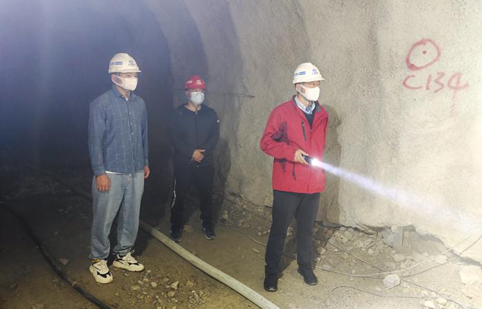 石俊對隧道施工現(xiàn)場安全進行了詳細的檢查,并現(xiàn)場指出存在的安全隱患問題。在對現(xiàn)場施工進度、人、材、機組織情況進行了詳細了解后,石俊對現(xiàn)場管理人員提出要求:一是緊盯4月15日CK段隧道關鍵線路貫通節(jié)點目標不放松,關注運輸車輛及運輸?shù)缆返酿B(yǎng)護,要確保在各方努力下將最后的100多米貫通任務完成;二是對兩個掌子面之間的爆破開挖作業(yè)統(tǒng)一指揮,確保施工安全;三是試驗質(zhì)檢等內(nèi)業(yè)資料必須完整,保證資料與現(xiàn)場施工進度一致;四是施工人員要正確佩戴勞保防護用品,切實保證安全生產(chǎn)。