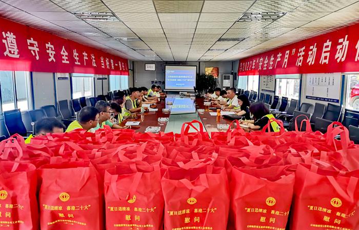 炎炎夏日送清涼,絲絲關(guān)愛入心田。8月10日,公司工會(huì)主席冷蕊帶隊(duì)深入永金高速新平(戛灑)至元江(紅光)段一分部、彌勒至玉溪高速公路勘察試驗(yàn)段象山段項(xiàng)目開展2022年“夏日送清涼 喜迎二十大”慰問活動(dòng)。