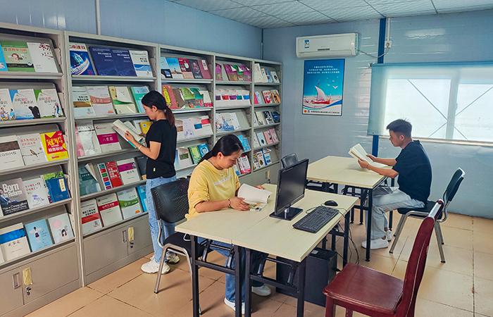 “職工書屋真是我們下班后的好去處,讓大家在緊張的工作之余有一個休閑讀書、學(xué)習(xí)的安靜場所,不僅豐富了業(yè)余生活,還能為自己的頭腦充電,給我們的考試取證提供了很大幫助,真好!”項(xiàng)目職工對書屋的設(shè)立很滿意,職工書屋成為了深受大家歡迎的“精神家園”。