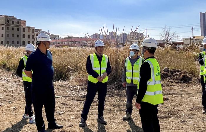 付雋蒼深入項目一線,認真聽取了項目負責人對項目進展情況的匯報。詳細了解項目圖紙設計進度、施工現(xiàn)場平面布置、工程樁試樁施工準備、安全管理、項目策劃計劃、疫情防控及值班值守等方面工作的開展情況以及下一步重點工作計劃。