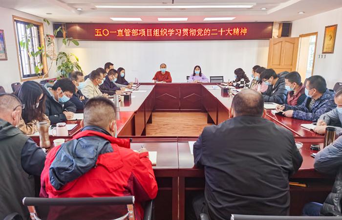 11月21日上午,五〇一直管部以主題黨日的形式學習貫徹黨的二十大精神,直管部黨員領(lǐng)導(dǎo)干部、科室負責人、項目經(jīng)理22人參加。