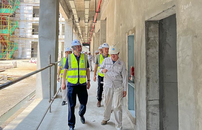 段益慶一行深入施工現(xiàn)場,聽取項(xiàng)目負(fù)責(zé)人對項(xiàng)目生產(chǎn)安全工作開展情況匯報(bào),實(shí)地察看了綜合大樓、學(xué)術(shù)報(bào)告廳施工部位,詳細(xì)了解項(xiàng)目進(jìn)展、安全管理組織構(gòu)架、現(xiàn)階段存在困難及現(xiàn)場安全管控等方面的情況,對下生產(chǎn)安全工作提出要求。