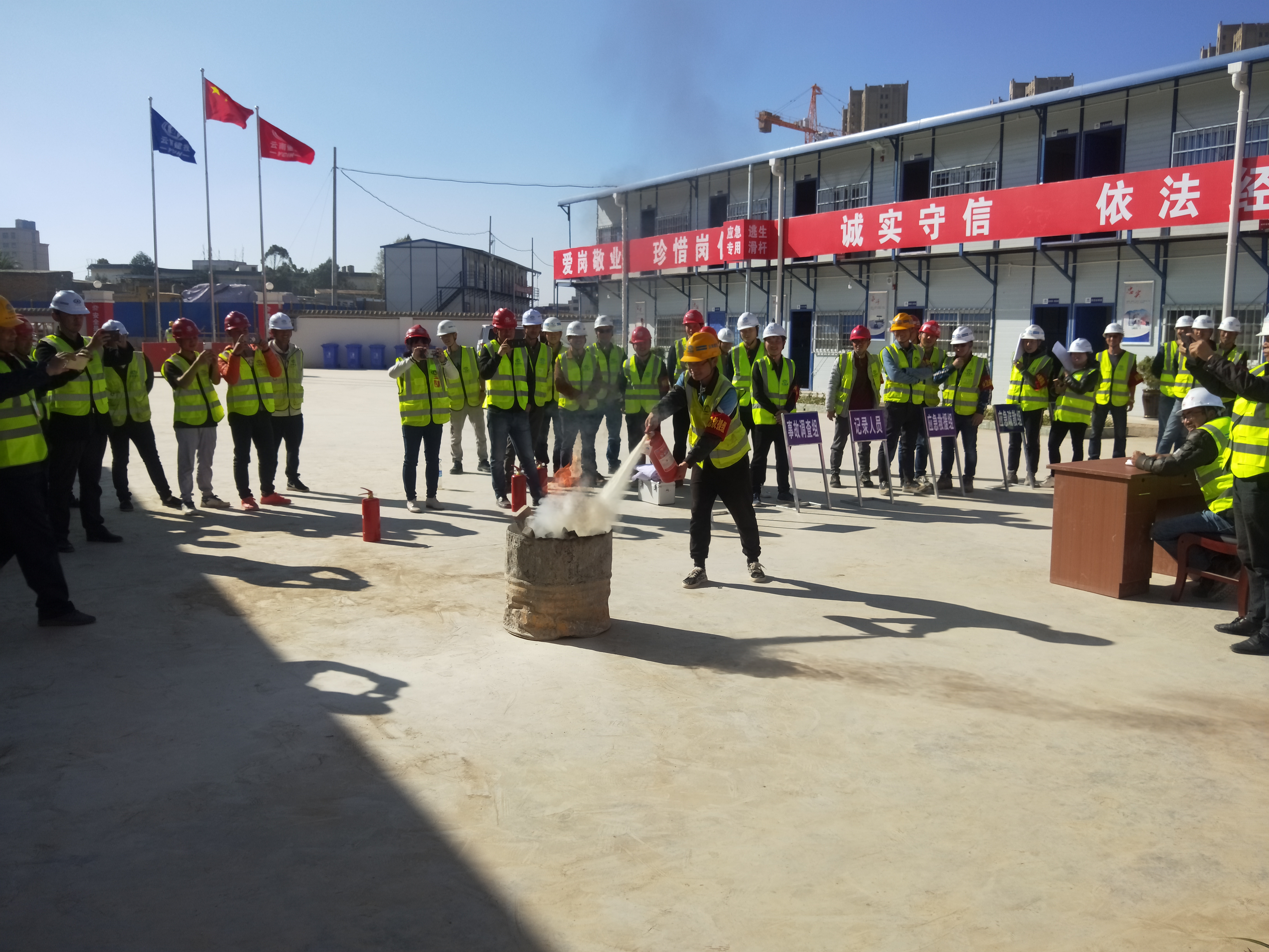 • 冬春旱季是火災高發(fā)時期,為進一步提高集團全員消防安全意識,切實做好今冬明春消防安全工作,維護好集團消防安全形勢穩(wěn)定,預防和杜絕火災事故的發(fā)生,集團總承包二部曲靖指揮部組織公司第五直管項目部、云南建投第三建設有限公司、云南建投第四建設有限公司7家參建單位11月28日14:00在項目辦公區(qū)進行消防安全演練活動。