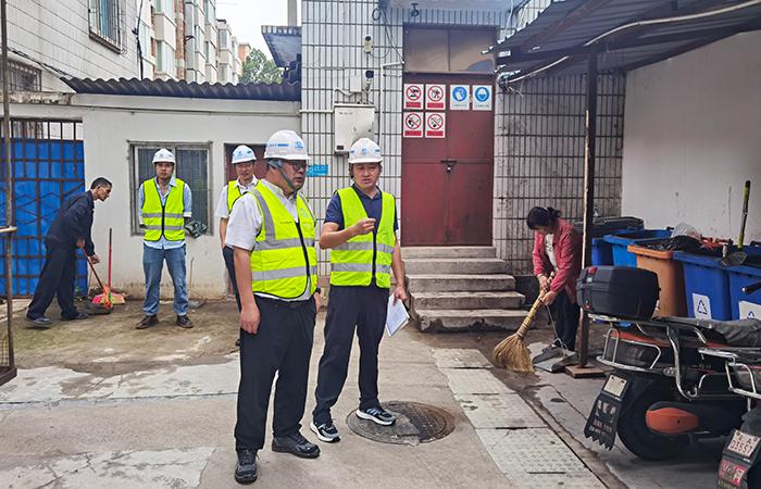 在兩處家屬區(qū),蔣璽詳細(xì)了解小區(qū)的住戶(hù)情況,物業(yè)人員和防汛設(shè)備配置情況,實(shí)地檢查了環(huán)境衛(wèi)生、配電房、滅火器等。