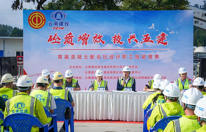 • 922上午,公司首屆“砼質(zhì)增效  技興五建”混凝土配合比設(shè)計職業(yè)技能競賽在云建綠砼西城區(qū)中心攪拌站隆重開幕。公司副總經(jīng)理石俊,工會主席冷蕊出席開幕式并致辭。
