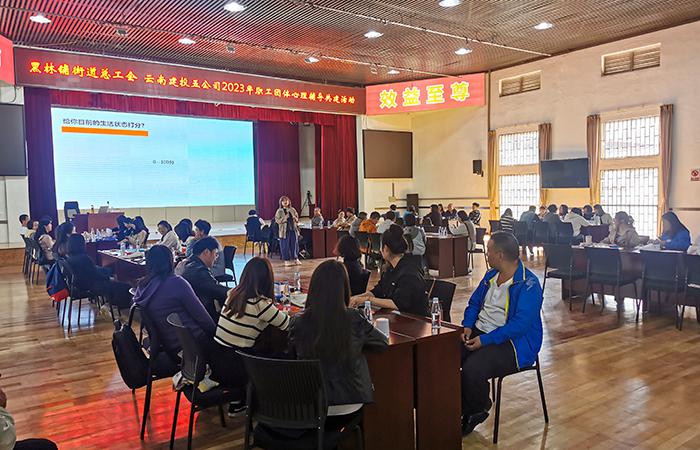 活動邀請到云南開放大學心理健康教育課程思政教學名師張倩老師,采用PPT從“心理常態(tài)與偏態(tài)”“心理問題與心理疾病”“心理咨詢”等方面結合案例分析的方式,圖文并茂、深入淺出的為職工講述了心理健康知識與調(diào)試方法。在心理賦能老師的帶動下,才加活動的職工依次開展了“繪制生命線”“繩索游戲——探索人際關系”“生涯彩虹圖——找到人生的位置”以及“案例分析”等體驗式活動,職工們逐漸敞開心扉、積極分享,在有趣的互動游戲中放松身心、充分體驗和交流,現(xiàn)場歡笑聲不斷。