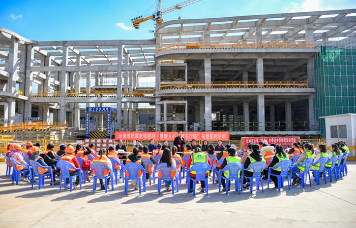 12月28日,云南省婦聯(lián)黨組書記、主席農(nóng)布央宗率隊到五公司負(fù)責(zé)施工的婦女兒童發(fā)展中心建設(shè)項目調(diào)研并開展“情暖人心·暖冬行動”慰問活動,為現(xiàn)場60余名女性產(chǎn)業(yè)工人送去節(jié)日關(guān)懷與溫暖。云南省婦聯(lián)黨組成員、副主席陳芳主持活動。