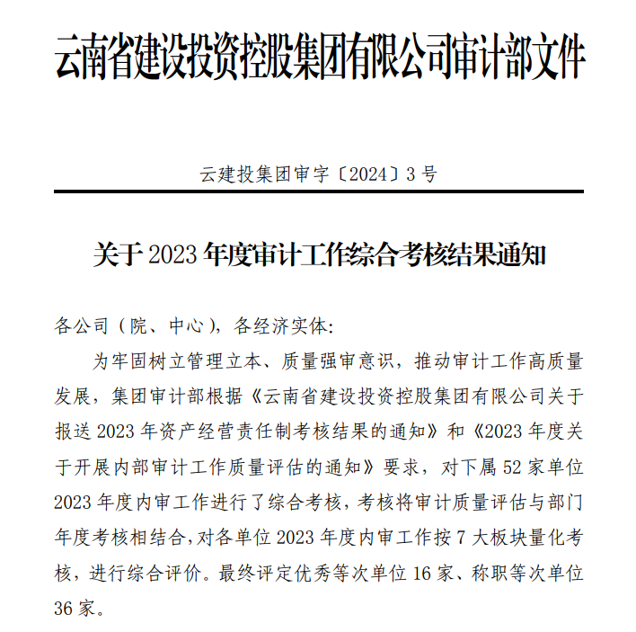 技術(shù)支持: 方森科技近日,集團審計部發(fā)布了《關(guān)于2023年度審計工作綜合考核結(jié)果通知》,考核將審計質(zhì)量評估與部門年度考核相結(jié)合,公司獲評“優(yōu)秀”等次。