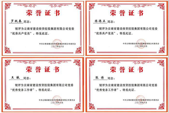 6月30日,云南建投集團(tuán)黨委召開慶祝中國(guó)共產(chǎn)黨成立103周年暨“兩優(yōu)一先”表彰大會(huì)。公司2名共產(chǎn)黨員獲評(píng)“優(yōu)秀共產(chǎn)黨員”榮譽(yù)稱號(hào),2名黨務(wù)工作者獲評(píng)“優(yōu)秀黨務(wù)工作者”榮譽(yù)稱號(hào)。