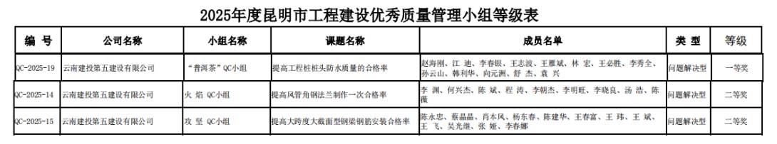 技術(shù)支持: 方森科技近日,云南省建筑業(yè)協(xié)會(huì)、昆明市建筑業(yè)協(xié)會(huì)相繼公布2025年度工程建設(shè)優(yōu)秀質(zhì)量管理小組成果評(píng)選結(jié)果,公司共8項(xiàng)優(yōu)秀QC成果獲獎(jiǎng),其中云南省建筑業(yè)協(xié)會(huì)一等獎(jiǎng)2項(xiàng),二等獎(jiǎng)1項(xiàng),三等獎(jiǎng)2項(xiàng);昆明市建筑業(yè)協(xié)會(huì)一等獎(jiǎng)1項(xiàng),二等獎(jiǎng)2項(xiàng)。公司獲評(píng)昆明市建筑業(yè)協(xié)會(huì)“工程建設(shè)優(yōu)秀質(zhì)量管理小組活動(dòng)優(yōu)秀企業(yè)”稱(chēng)號(hào)。
