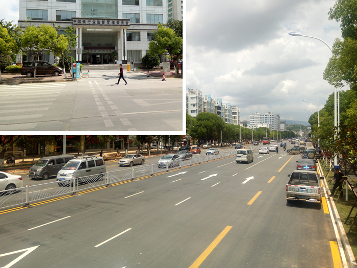 蒼山路改造前后對(duì)比,改造后路面平整寬闊。