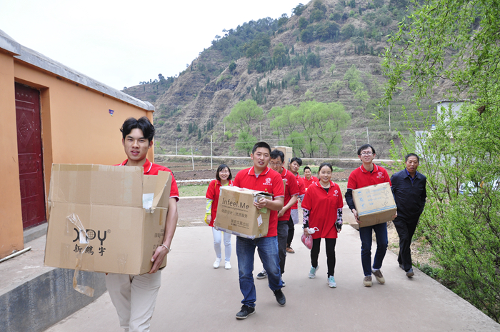 將學(xué)習(xí)用品送至小朋友手中