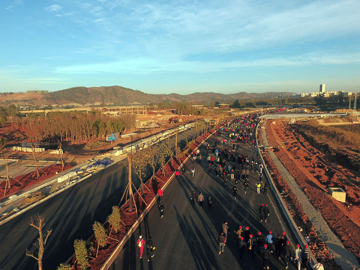 活動(dòng)全程5公里,由公司路橋二部,五〇一直管部負(fù)責(zé)施工的濱江大道、鳳凰大道、跨龍川江大橋作為活動(dòng)路線。活動(dòng)原定于2017年1月25日進(jìn)行,由于臨近新春佳節(jié),故提前五天舉辦,這給原本就緊張的工期增加了壓力。項(xiàng)目部在指揮部的組織下,制定了“1.20”節(jié)點(diǎn)目標(biāo),并要求現(xiàn)場管理人員勿必合理安排施工計(jì)劃,調(diào)度人員、設(shè)備全力以赴地做好活動(dòng)籌備工作。經(jīng)過連夜奮戰(zhàn),最終確保了活動(dòng)的順利進(jìn)行。