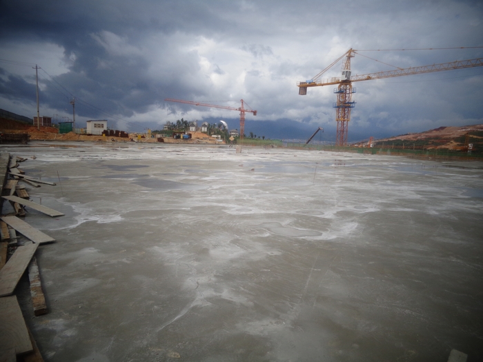 早上6:00,由第九直管項目部負責施工的大理海東山地新城中學校區(qū)建設項目部風雨操場3臺汽車泵已經(jīng)到位、混凝土罐車已經(jīng)到位、4名負責風雨操場的值班工長已經(jīng)到位、實驗員已經(jīng)到位、混凝土班組36名操作人員已經(jīng)到位、鋼筋班組4名值班人員已經(jīng)到位、5名架子工已經(jīng)到位、木工班組3名值班人員已經(jīng)到位、4名架體監(jiān)測專人已經(jīng)到位、現(xiàn)場安全警戒線已設置完成,一切工作均已按計劃準備就緒。