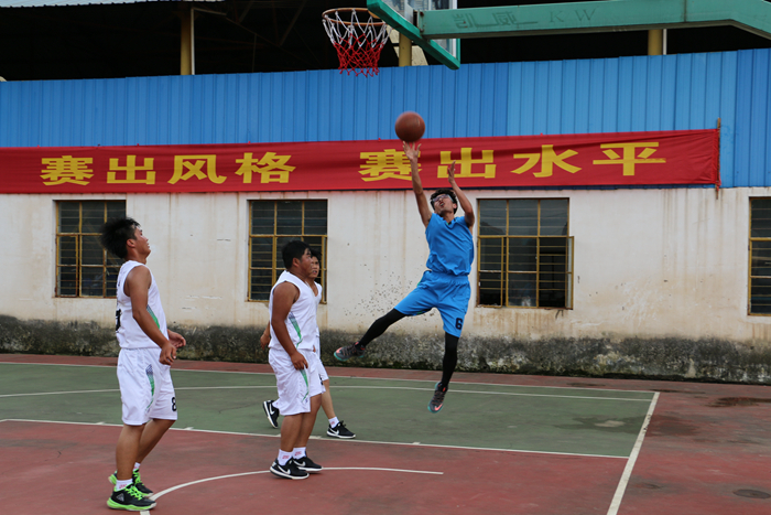 上半場(chǎng),直九部在比分一直落后的情況下,展開了拼防守、拼籃板球、每球必爭(zhēng)、奮起直追的戰(zhàn)略,終于在第二節(jié)的最后時(shí)刻把比分追平,第三節(jié)開始比分一直僵持。關(guān)鍵時(shí)刻,隊(duì)員們看準(zhǔn)時(shí)機(jī)發(fā)起反攻、連連得分,場(chǎng)下拉拉隊(duì)大聲吶喊助威。最后,裁判吹響了結(jié)束的哨聲,直九部以46:33的比分拿下本場(chǎng)比賽的勝利。