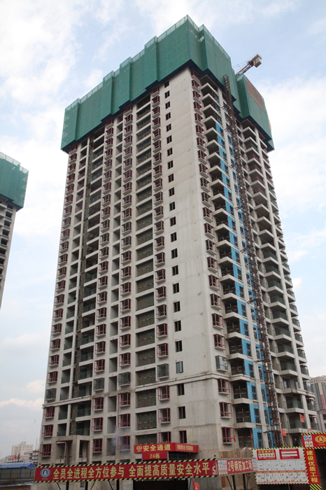 官渡區(qū)五里中央商務(wù)區(qū)(CBD)A22地塊主體工程(一標(biāo)段)位于昆明市民航路于菊苑路交叉口,于2015年1月8日進(jìn)場施工,總建筑面積8萬平方米,地下室三層,地上兩棟,分別為Z5棟20層、Z6棟28層。該項(xiàng)目也是公司創(chuàng)品牌的重點(diǎn)項(xiàng)目,施工前期項(xiàng)目部從安全、質(zhì)量、成本、技術(shù)、文明施工等進(jìn)行了全面的策劃,在施工過程中采用鋁模施工新工藝,并進(jìn)行了優(yōu)化和改進(jìn),加強(qiáng)細(xì)部管理、質(zhì)量控制、窗框壓槽細(xì)化,最終達(dá)到混凝土接觸面不粉刷要求。此外,項(xiàng)目外墻膩?zhàn)?、外窗、欄桿隨主體結(jié)構(gòu)同步向上施工,主體結(jié)構(gòu)封頂后爬架采用空中解體方式拆除,在質(zhì)量進(jìn)度成本方面均有較好的效果,在建設(shè)單位組織的季度考核中三次奪得桂冠。