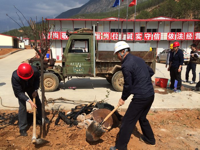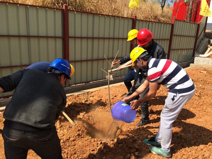 “你挖坑來、我放樹;你埋土來、我澆水”,3月13日,公司香麗項(xiàng)目部三工區(qū)駐地的植樹活動正在熱火朝天地進(jìn)行著。