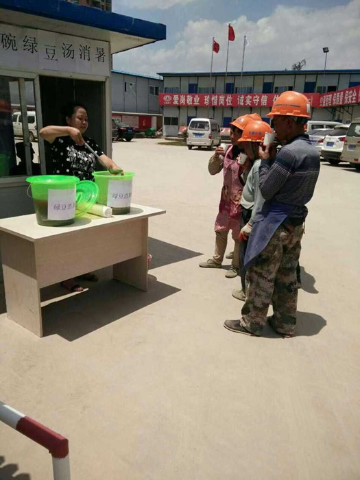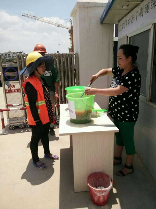 為保障施工工人的身體健康,保證安全生產(chǎn),五〇七直管部五里中央商務(wù)區(qū)項(xiàng)目部采取切實(shí)有效的防護(hù)措施,堅(jiān)持以人為本,認(rèn)真做好一線工人的防暑降溫工作。近日,由五里中央商務(wù)區(qū)項(xiàng)目部項(xiàng)目經(jīng)理李朝松牽頭,熬制解暑綠豆粥給各位職工、工人分食,避免中暑現(xiàn)象的發(fā)生。直管部黨支部書(shū)記崔建欣、工會(huì)主席畢鵬等領(lǐng)導(dǎo)親自到施工現(xiàn)場(chǎng)慰問(wèn)、送清涼,為一線員工和農(nóng)民工朋友加油鼓勁。送清涼活動(dòng)切實(shí)保障了廣大員工的安全健康,同時(shí)也激發(fā)了員工的工作熱情。