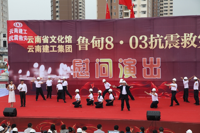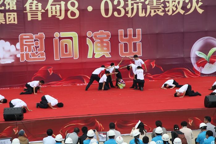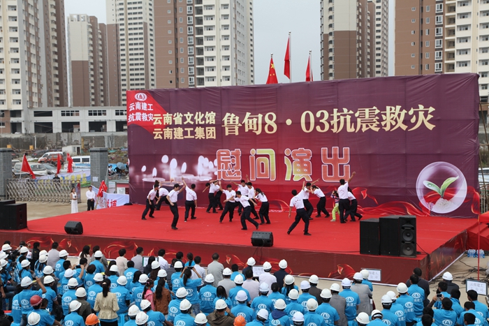 •     9月20日,集團與省文化館在昭通市昭陽區(qū)2012年保障房項目部聯合舉辦的抗震救災文藝演出。慰問演出中,參演節(jié)目精彩紛呈,舞蹈、獨唱、小品、雜耍等節(jié)目各具特色,彰顯了建工人高原鐵軍的精神。