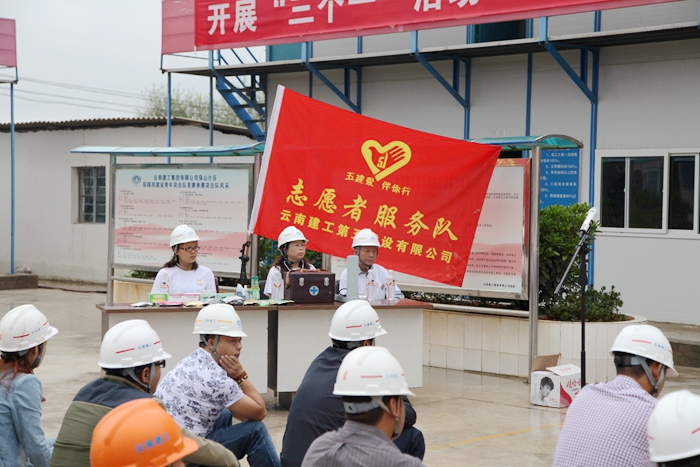 “你的血壓是正常的,沒有問題”,“夏天宿舍蚊子多,帶上兩瓶花露水”,“這兩天要多休息,按時(shí)吃藥”。6月15日上午,在保山保障房隆陽(yáng)區(qū)5#地塊現(xiàn)場(chǎng),在公司與保山保障房建設(shè)指揮部共同組織的安全生產(chǎn)月及“千萬(wàn)農(nóng)民工同上一堂課”活動(dòng)之際,公司工會(huì)組織的“五建愛·伴你行”志愿服務(wù)小組到保山市保障房指揮部開展“送清涼、送健康”服務(wù)活動(dòng)。
