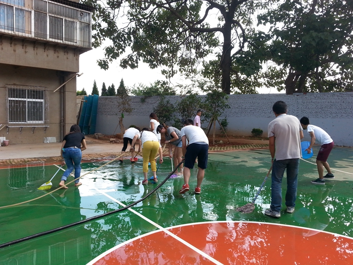 經(jīng)過兩個多月的建設(shè)改造,如今的直管部舊貌換新顏?;@球場的改造,正好迎接了公司今年的職工籃球賽,期盼已久的年輕人們迫不及待的清洗、打掃著球場,恨不得抱上籃球馬上在球場上一比高低。漂亮的籃球場上,白天奔跑著青春活力的籃球隊員,到了晚上,一群群熱愛生活的老年職工住戶跳著健身舞,球場邊調(diào)皮的孩子你追我趕,熱鬧非凡,健身器材上“呼哧呼哧”的身影,汗流浹背,每天這樣和諧的景象通常要持續(xù)到晚上10點多才恢復(fù)平靜。