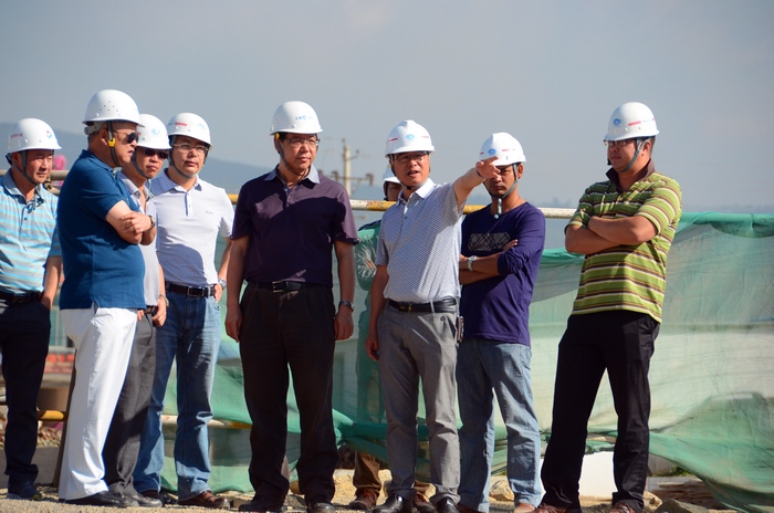 史呈森(右三)陪同下參觀工地現(xiàn)場