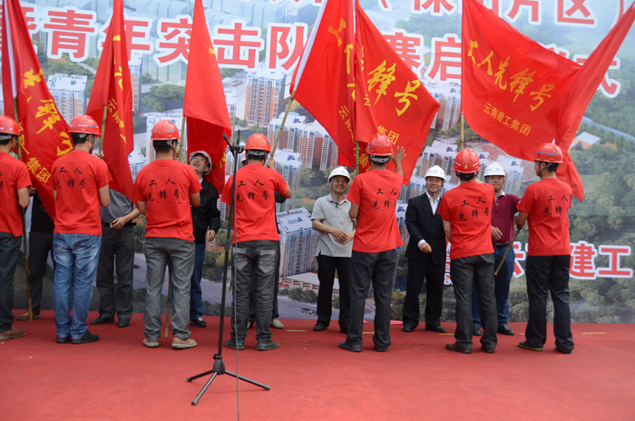 5月17日,保山片區(qū)2012年保障房建設(shè)項(xiàng)目勞動(dòng)競賽暨青年突擊隊(duì)競賽啟動(dòng)儀式在保山市隆陽區(qū)5#地塊拉開帷幕。圍繞集團(tuán)提出的保障房建設(shè)“四保一控一樹”目標(biāo),勞動(dòng)競賽激發(fā)廣大職工立足崗位奮發(fā)趕超的進(jìn)取精神,青年突擊隊(duì)激發(fā)青年職工比貢獻(xiàn)、比業(yè)績,迅速掀起施工生產(chǎn)高潮,為順利完成保障房建設(shè)的目標(biāo)任務(wù)助力加油。