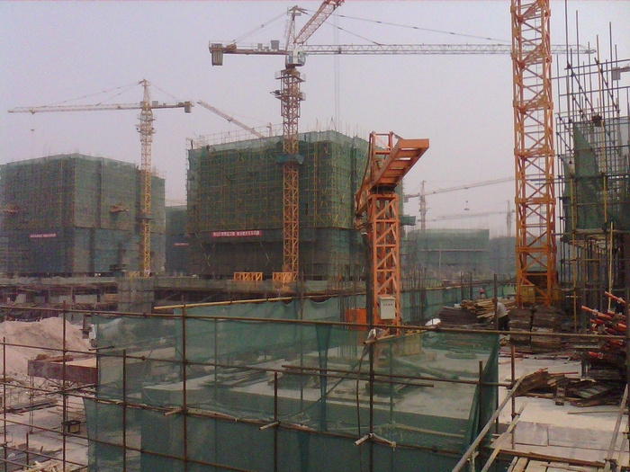 7臺(tái)大型塔吊全面覆蓋施工現(xiàn)場(chǎng)、交叉作業(yè)