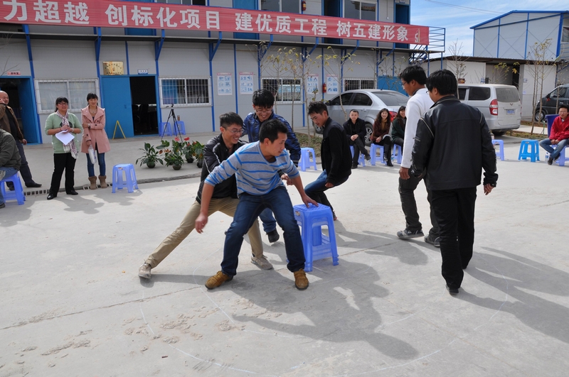 活動(dòng)正式開始,首先由項(xiàng)目部職工為大家表演了精彩的節(jié)目《小房子的秘密》,雖然沒有華麗的舞臺(tái)及震撼的音響效果,但臺(tái)下依舊傳來震震熱烈的掌聲。接著是直三工會(huì)精心準(zhǔn)備的游園活動(dòng),“搶凳子”“障礙水杯”“瞎子摸魚”……一個(gè)個(gè)有趣的游戲讓大家笑聲不斷,最后大家合唱《團(tuán)結(jié)就是力量》,在歌聲中結(jié)束了此次活動(dòng)。