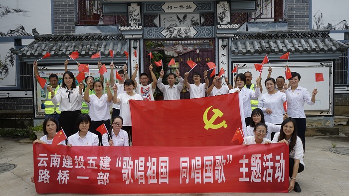 • “我和我的祖國(guó),一刻也不能分割……”悠揚(yáng)的音樂(lè)聲響起,路橋一部二線員工舞動(dòng)著五星紅旗,走出辦公室,在直管部門(mén)前集合,齊聲合唱《義勇軍進(jìn)行曲》《建投之歌》和《我和我的祖國(guó)》。8月15日,路橋一部直管部所在地及各項(xiàng)目部駐地開(kāi)展了“歌唱祖國(guó),同唱國(guó)歌”主題活動(dòng),寧蒗、施甸、麗江、大理、昆明,幾個(gè)項(xiàng)目部與直管部異地同音,用自己的歌聲唱出了對(duì)祖國(guó)的美好祝愿。