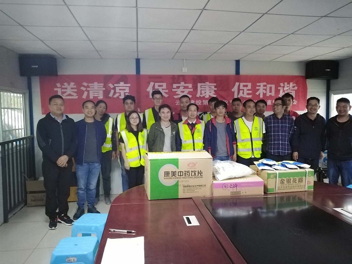 六月,畢鵬分別到2018年五華區(qū)C級不安全校舍重建項目、鎮(zhèn)雄縣第二人民醫(yī)院項目、大關(guān)縣翠華鎮(zhèn)中學(xué)項目進(jìn)行“送清涼”慰問,為項目一線職工們送去了菊花茶、十滴水、金銀花露、驅(qū)蚊藥水等物品。炎熱的夏季,頭頂烈日,穿梭于鋼筋叢林之中,一旦出現(xiàn)頭暈等中暑癥狀,一小瓶十滴水就會及時緩解癥狀;辛苦一天,晚上回到寢室,泡上一杯菊花茶,可緩解一天的疲勞;夜深了,點上一圈蚊香,或噴上一點驅(qū)蚊液,整夜好眠。