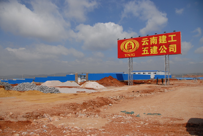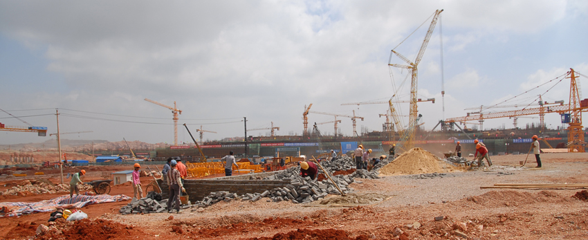 A3 臨設(shè)施工進行中。背景是先期開工、已在進行主體結(jié)構(gòu)施工的航站樓工程。