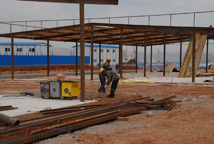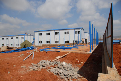 根據(jù)公司的部署,新機場工程項目部不等不靠,抓緊一切可以開展工作的時機及時開展A3合同段施工前期工作。目前,三臺塔吊已經(jīng)安裝就位,正在進行鋼纜安裝;三個鋼筋加工場正在搭建鋼結(jié)構(gòu)防雨棚;配電房正在進行屋面施工;辦公區(qū)板房搭建完成,生活區(qū)建設(shè)正加緊進行;辦公區(qū)和生活區(qū)彩鋼板圍欄施工基本完成;施工區(qū)已全部完成周圍的鋼管-安全網(wǎng)圍護;基礎(chǔ)已完成10個承臺基坑的土方開挖施工;施工管理人員在進行放線作業(yè)。