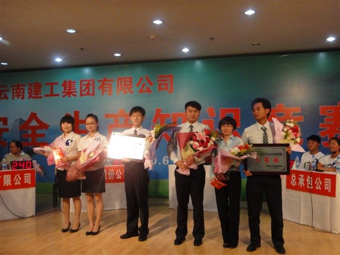 在安全生產(chǎn)月來臨之際,集團公司組織安全生產(chǎn)知識競賽。五建公司工會、團委高度重視,積極組織,在全司范圍內(nèi)多方篩選,選出4名優(yōu)秀管理人員組成公司代表隊。 6月10日,五建公司代表隊參加小組賽角逐進入決賽。6月18日下午在與進入決賽的六家兄弟單位較量中獲得決賽第二名。